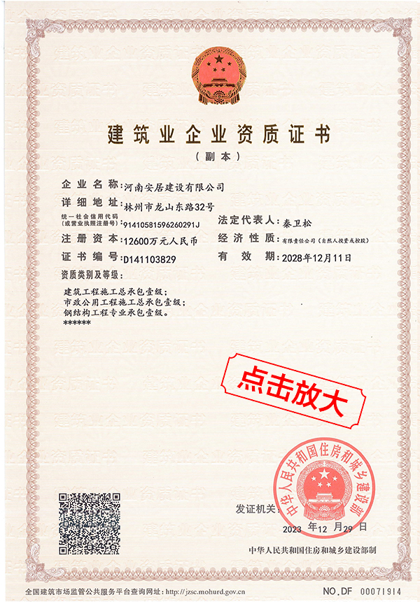 滔滔黃河哺育了中華民族拼搏向上的奮斗精神,巍巍太行造就了中原兒女的紅旗渠精神。百萬林州人下太行,鑄就了中國(guó)建筑之鄉(xiāng)響當(dāng)當(dāng)?shù)囊燮放啤:幽习簿咏ㄔO(shè)有限公司從誕生起血液里就流淌著紅色基因,秉承“安得廣夏千萬間,大庇天下寒士俱歡顏”的擔(dān)當(dāng)精神,用鋼筋混凝土筑起了高樓大廈,也用一流品質(zhì)、家國(guó)情懷打造了安居建設(shè)的輝煌成績(jī)。公司成立于2012年,注冊(cè)資金12600萬元,公司成立至今,擁有建筑,市政施工總承包等十項(xiàng)一級(jí)資質(zhì);其他二級(jí)等資質(zhì)共二十余項(xiàng)。公司秉承質(zhì)量第一,服務(wù)為主,堅(jiān)持垂直管理,從不設(shè)立分公司等分支機(jī)構(gòu)。